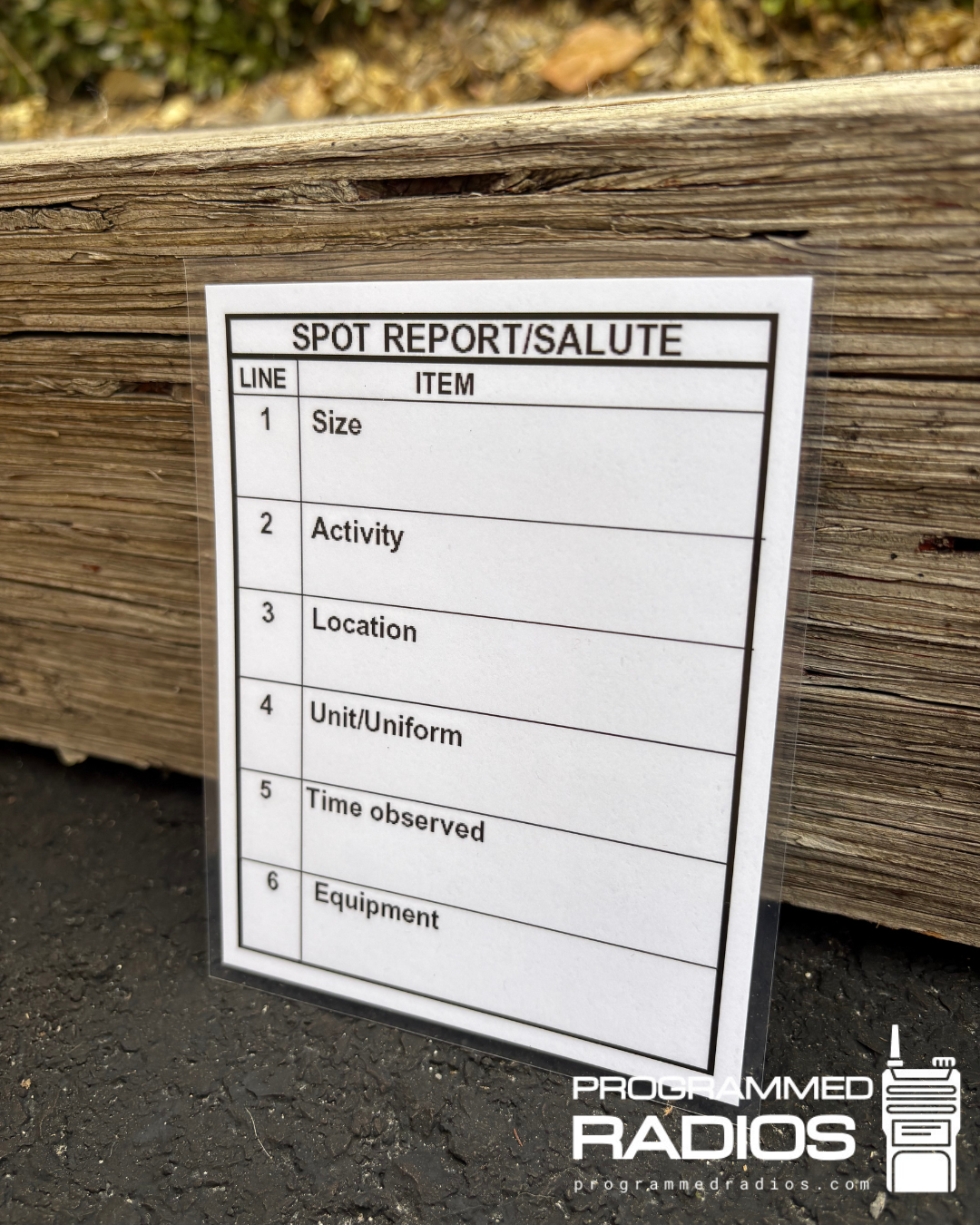 The SALUTE / Contact Report Card is a compact, durable field tool built around proven military-style reporting formats to help you deliver clear, actionable information under stress. In emergencies, people often forget key details or ramble on the radio—this card gives you a simple structure so your message is complete, calm, and immediately useful to anyone listening.